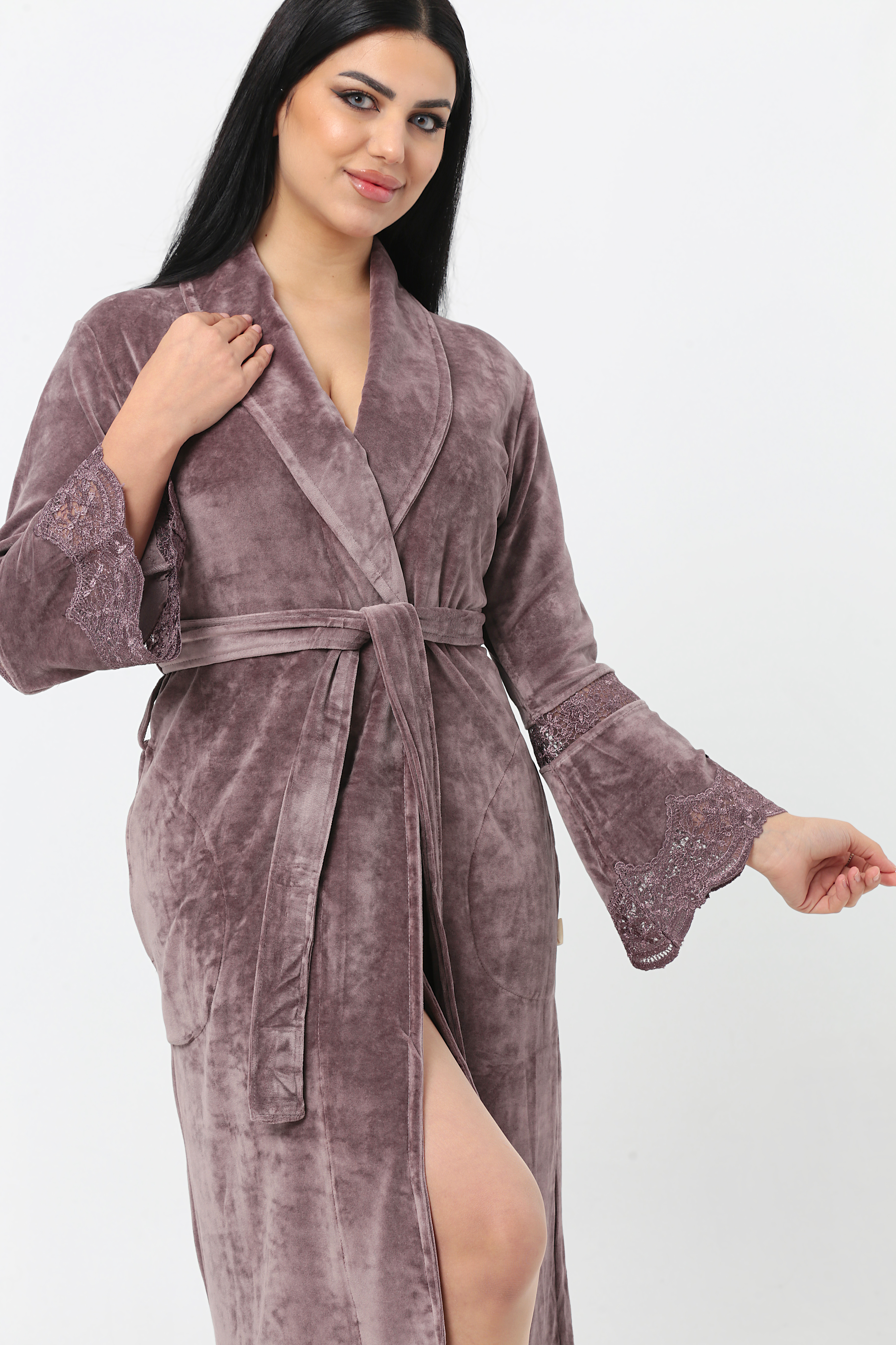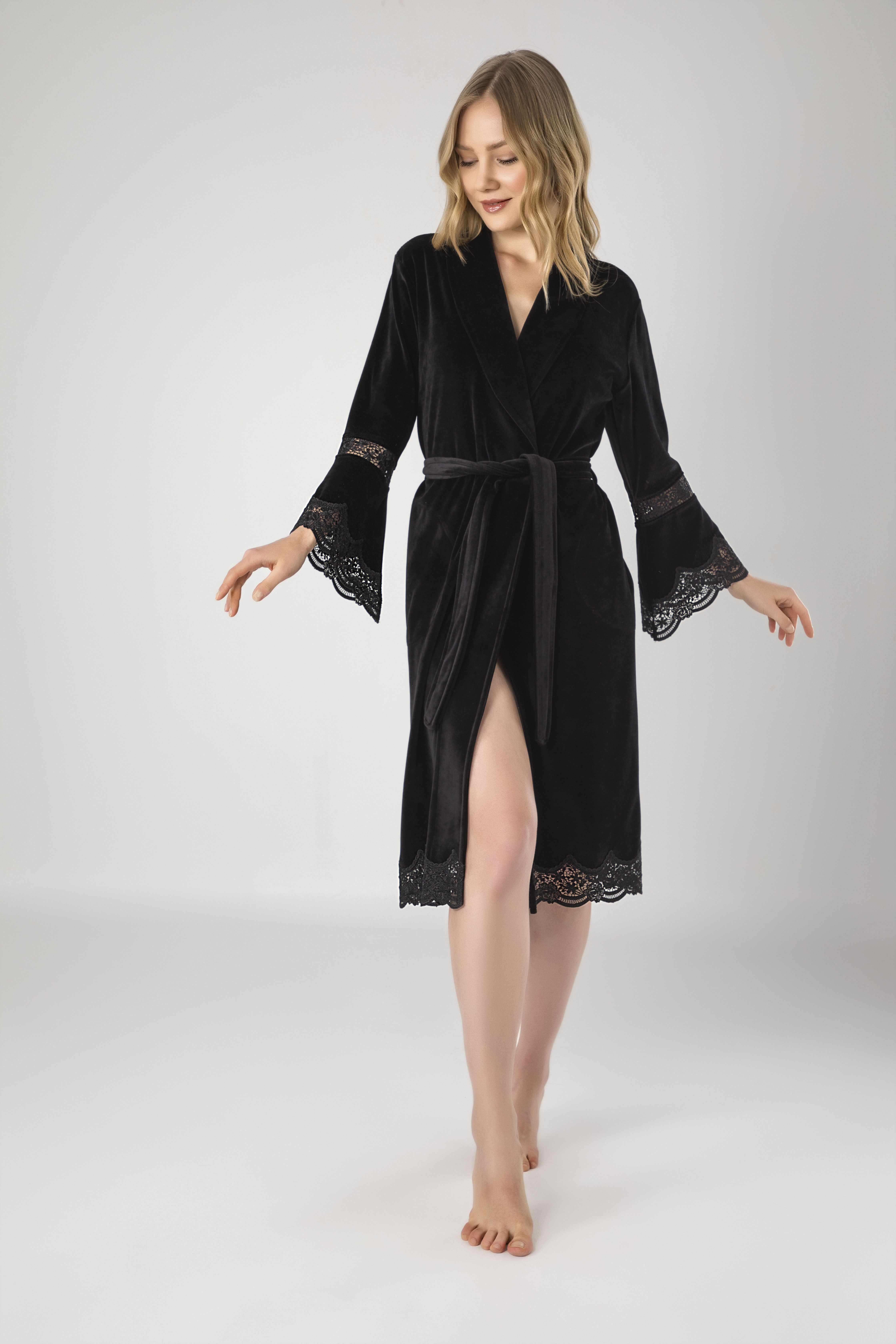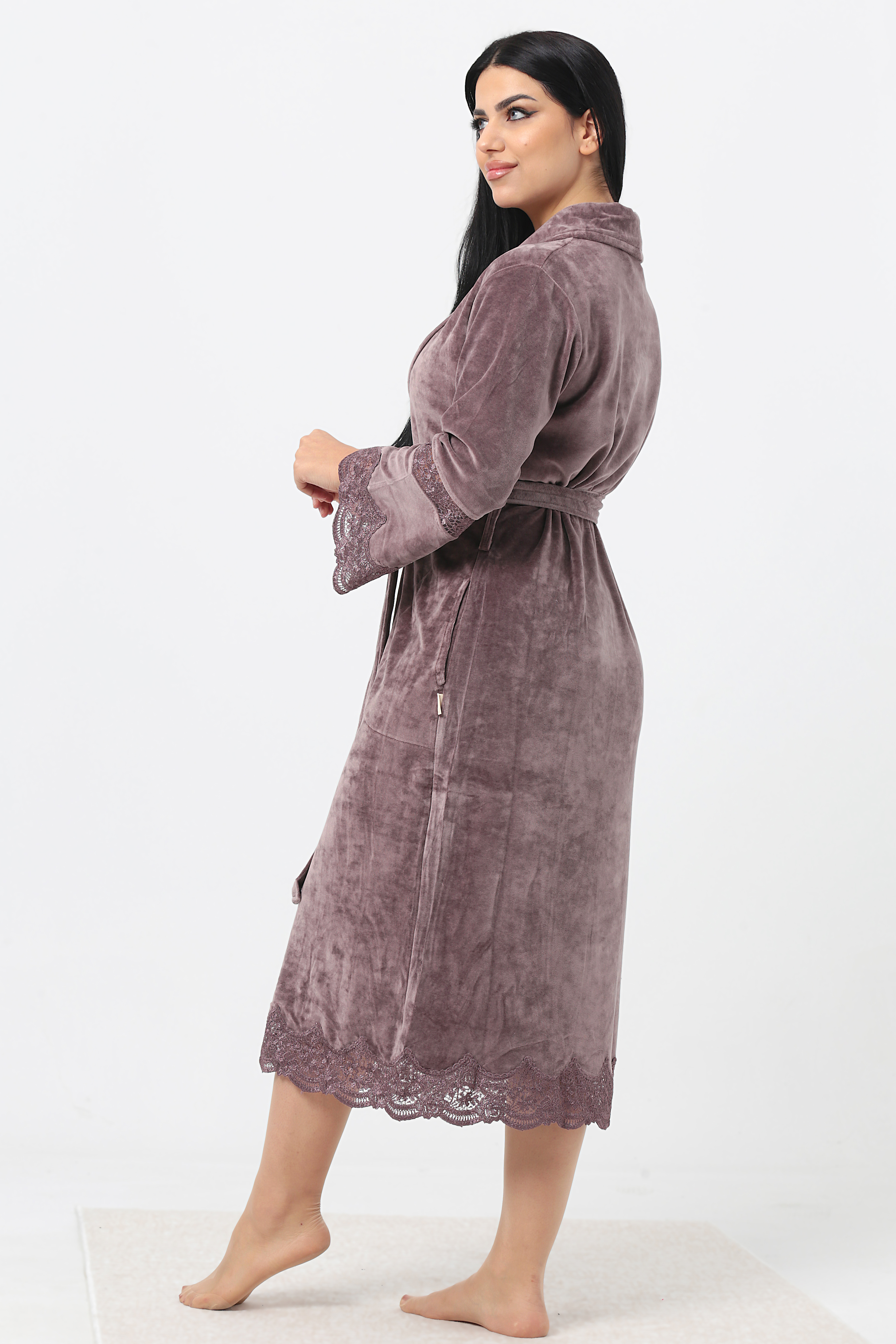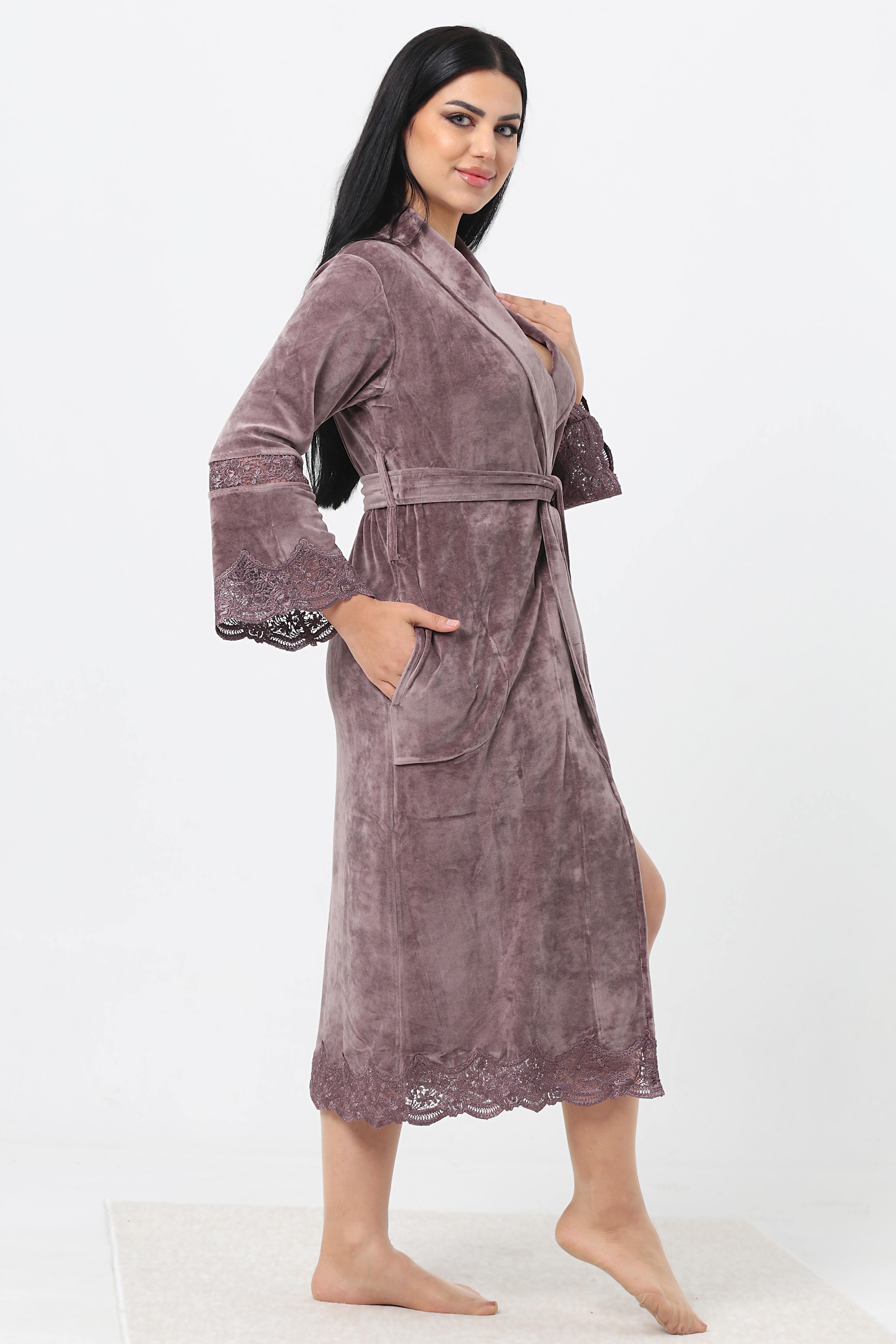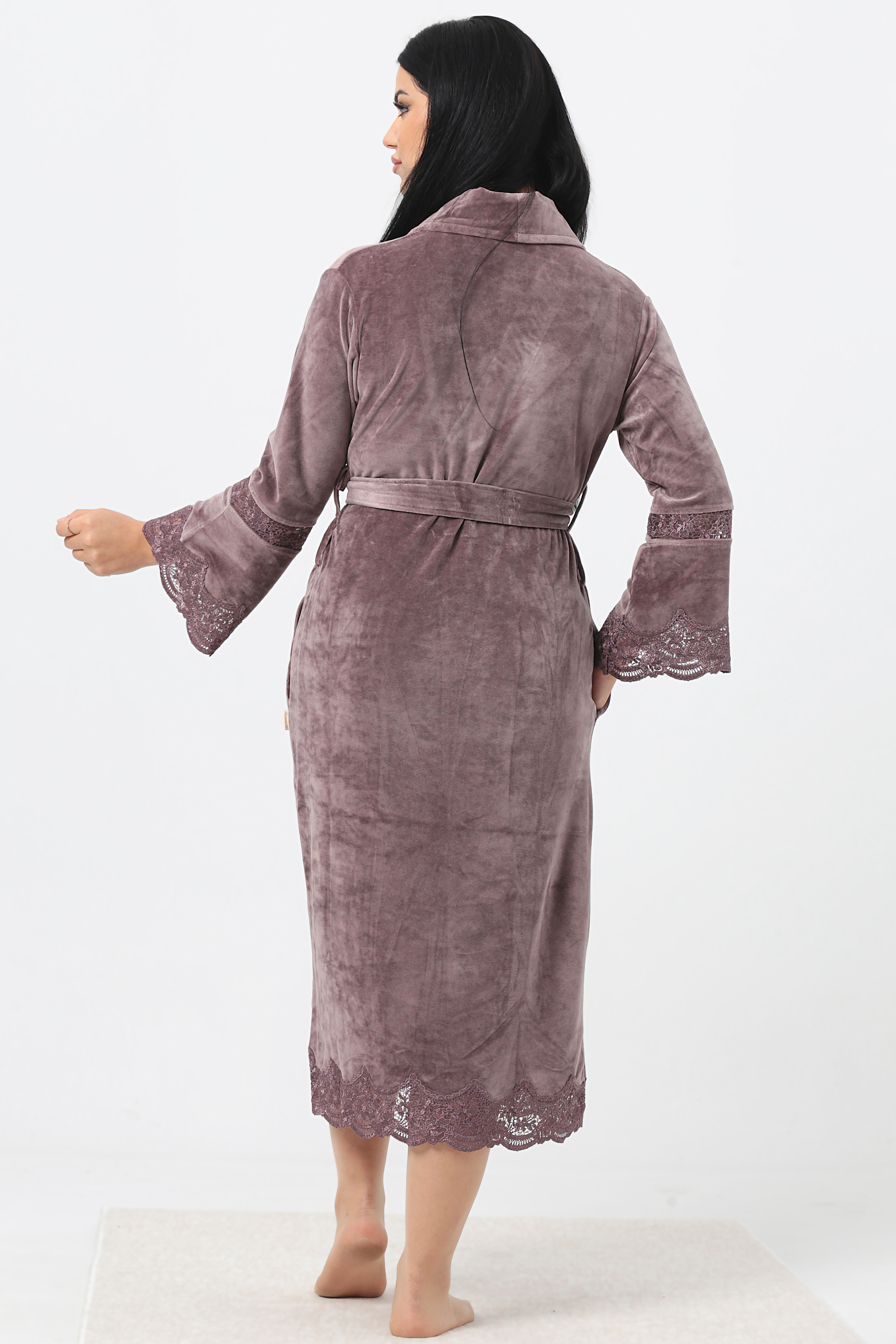 Kısa Şalyaka Dantelli İspanyol Kol Bambu Cotton Bayan Sabahlık